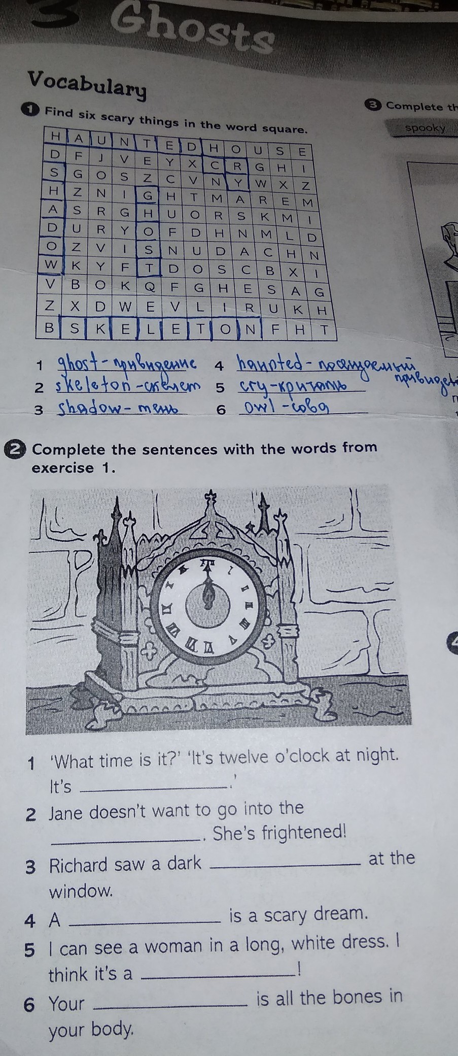 1) midnight 2) hounted house 3) shadow 4) nightmare 5) ghost 6) ?