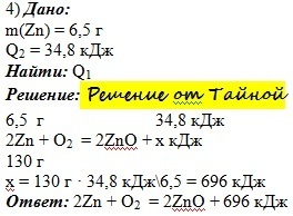 При сжигании 6,5г цинка выделилось 34,8кдж теплоты.