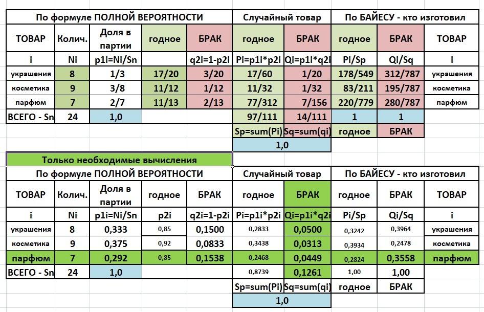 Совершенно необходимые вычисления выделены в одной из таблиц.