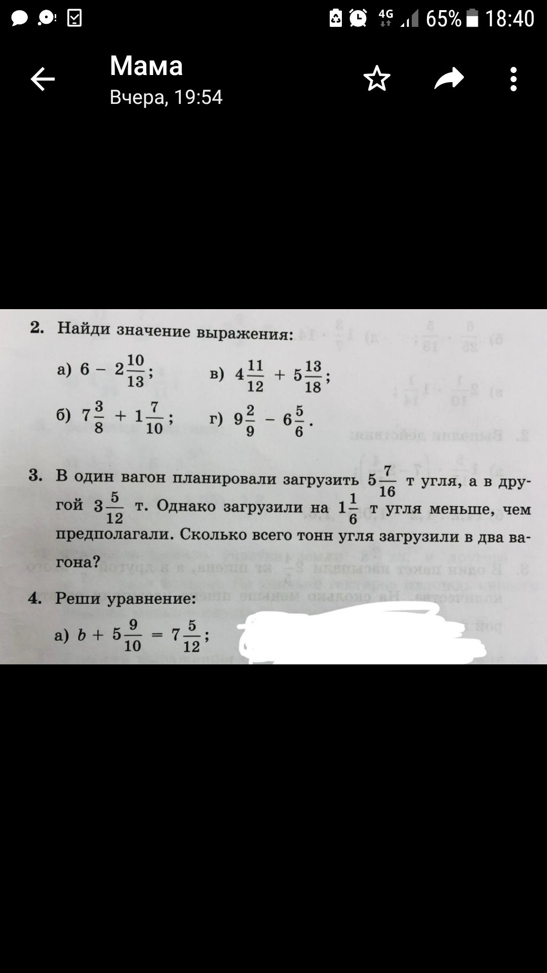 г) 9 2/9 - 6 5/6 = 9 4/18 - 6 15/18 = 8 22/18 - 6 15/18 = 2 7/18