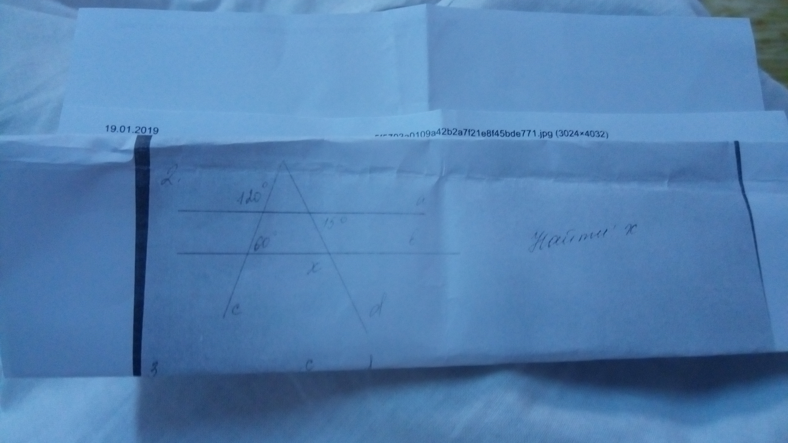Сначала нужно доказать, что это прямые параллельны (120+60=180)как смежные и накрест лежащие, следовательно прямые параллельны), потом ищем х 180-15=165 как смежные и накр. леж.