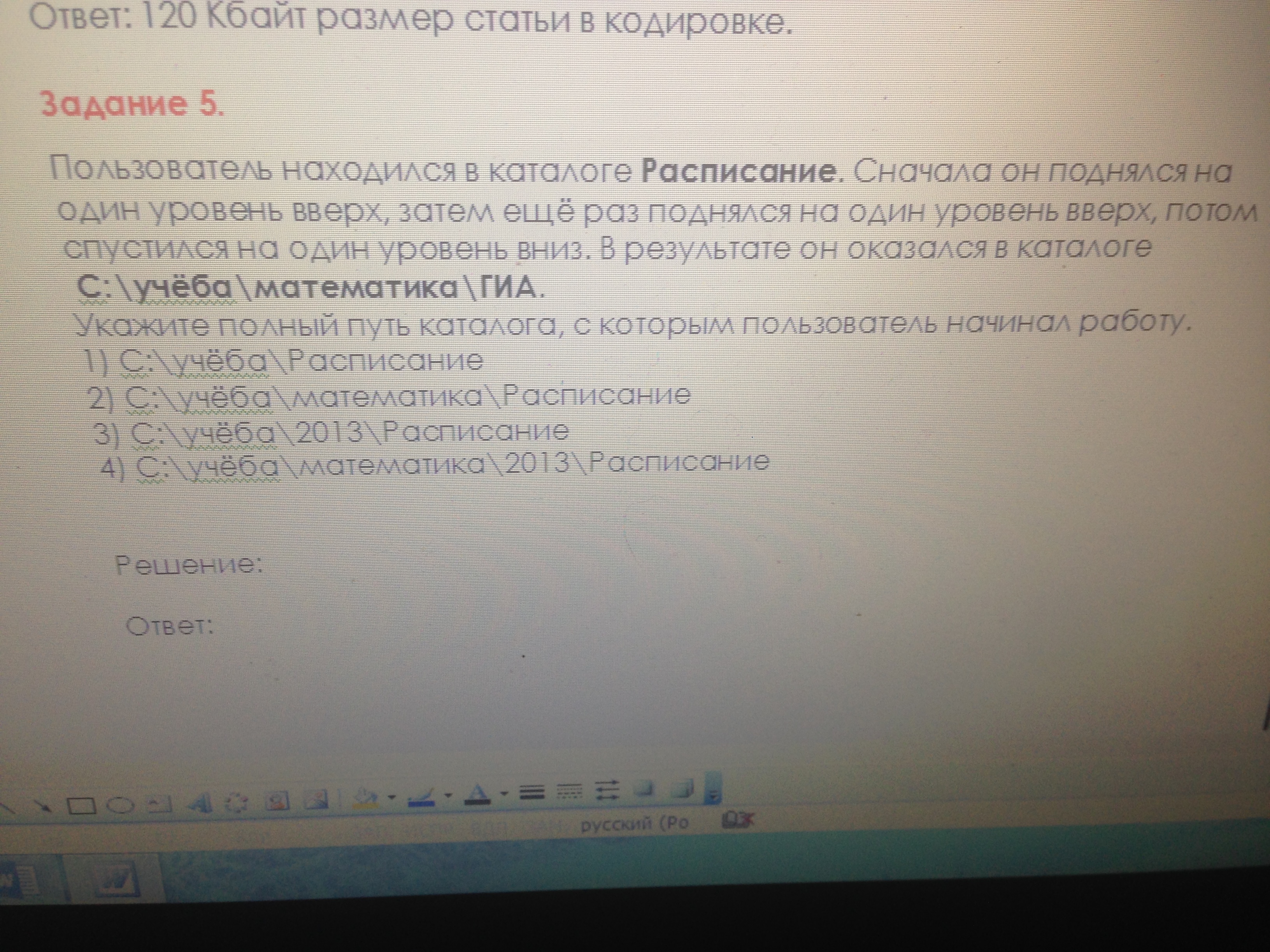 должны оказаться в каталоге Расписание, а так как у нас между учебой и расписанием находится 2 уровня, то правильный ответ будет 4: