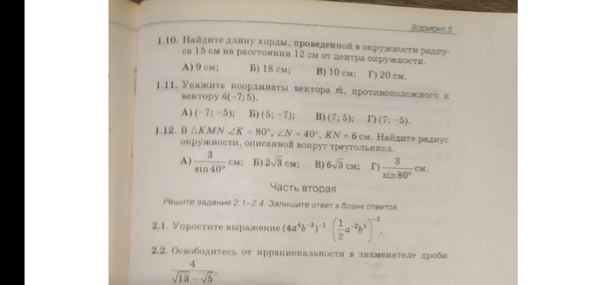 1.12 ∠М=180-(∠K+∠N)=180°-80°-40°=60°; обозначим сторону, противолежащую ∠М - m; 2R=m÷sinα; 2R=6÷sin 60°; 2R=6÷√3/2;