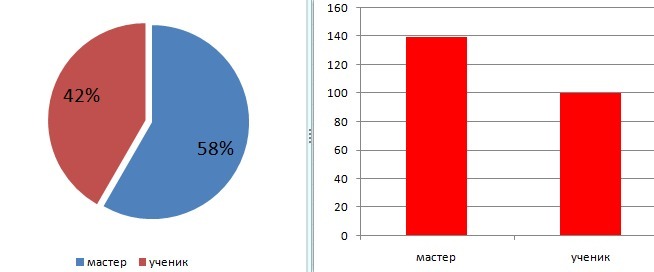 2) 140% - 100% = на 40% у мастера больше - ответ.