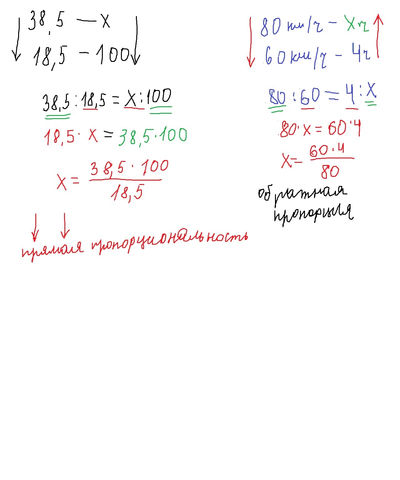 помогите пожалуйста ответить на один вопрос. Почему когда мы записываем пропорцию из краткой записи (из задачи) например 38,5-x 18,5 - 100 то мы меняем х и 100 местами например 38,5/100 = 18,5/х объясните подробно пожалуйста!!!!
