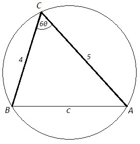 В окружность вписан треугольник со сторонами 4 и 5 см, между этими сторонами угол в 60 градусов. Найдите радиус описанной окружности