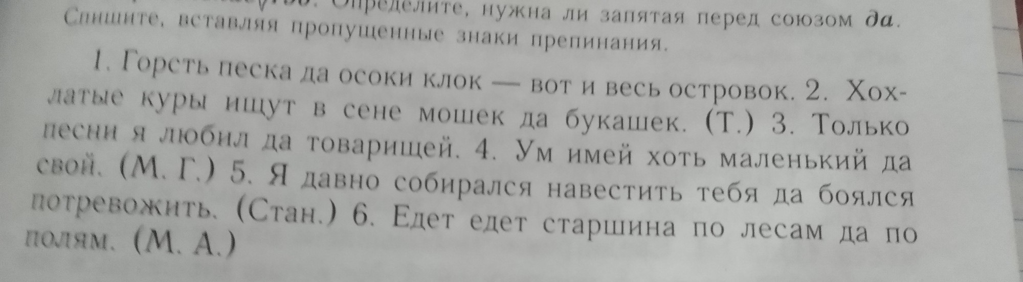 определите нужна ли запятая перед союзом да. Спишите вставляя пропущенные знаки препинания