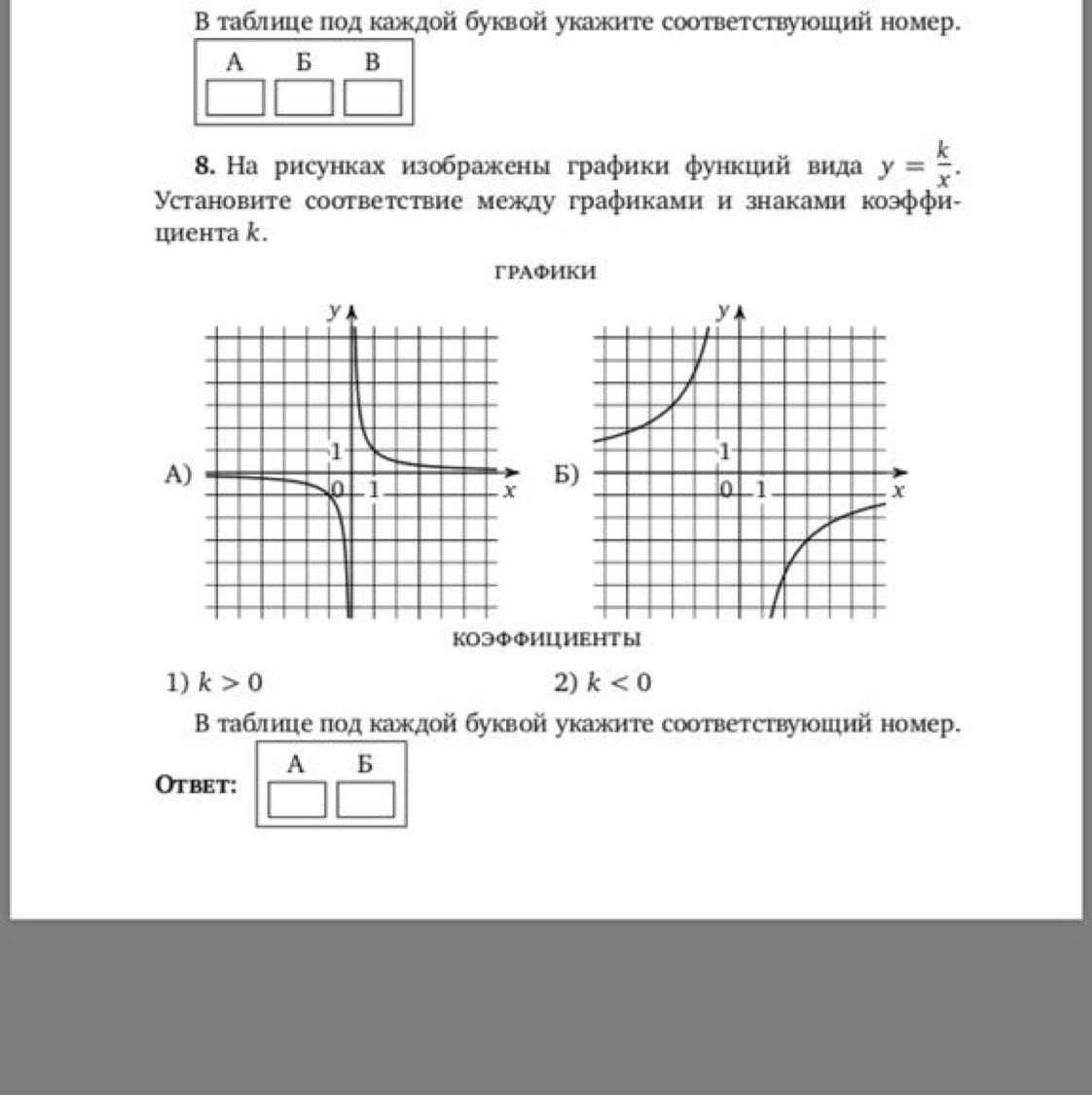Случаю к>0 соответствует рисунок А, случаю к<0 соответствует рисунок Б