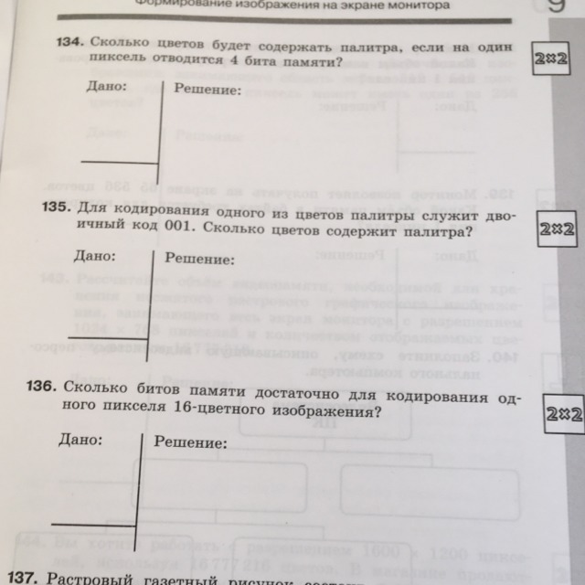 2 Для кодирования одного из цветов палитры служит в личный код 001 сколько часов содержит палитра. 3Сколько битов памяти Достаточно для кодирования одного пикселя 16 цветного изображения. 4. Растровый газетный рисунок состоит из точек четырёх цветов чёрного тёмной серого цвета серого белого сколько битов понадобится для двоичного кодирования одного пикселя этого рисунка