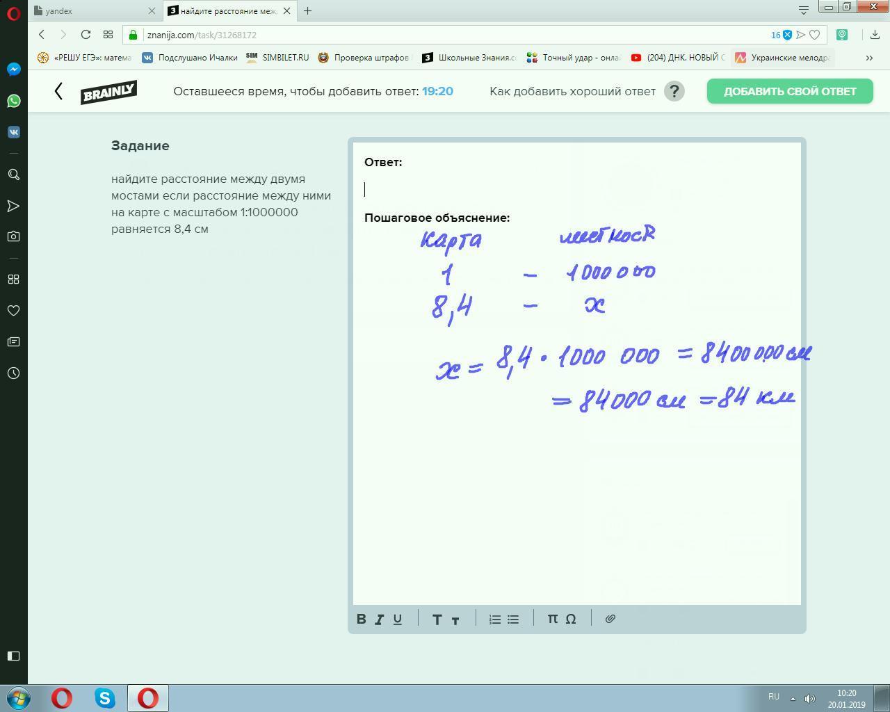 найдите расстояние между двумя мостами если расстояние между ними на карте с масштабом 1:1000000 равняется 8,4 см