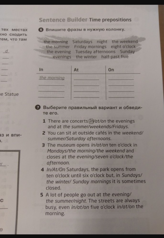 on : Saturdays , Friday mornings , Tuesday afternoons , Sunday evenings