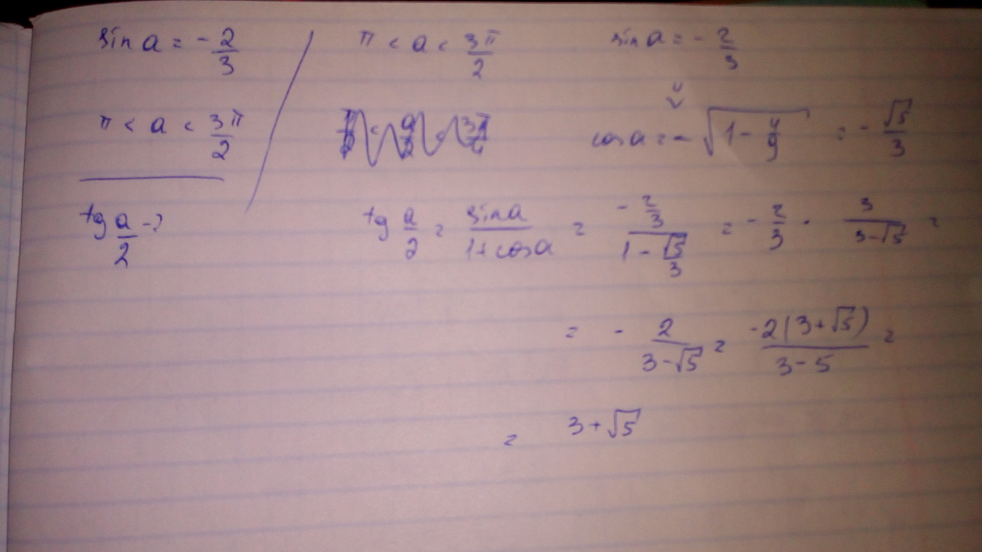 Найти tg a/2 если sin a = -2/3 , P меньше A и меньше 3P/2
