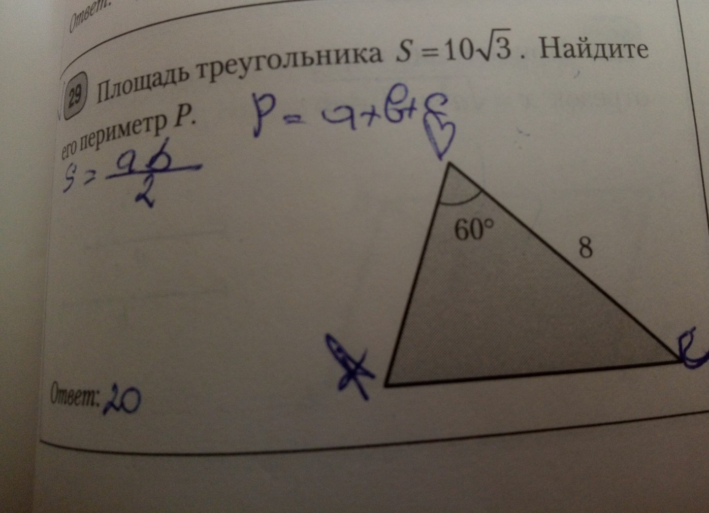 Пошаговое объяснение: Из формулы S=ab/2 *Sina находим произведение ab 10√3=ab√3/4⇒ab=40? по условию b=8 значит а=5