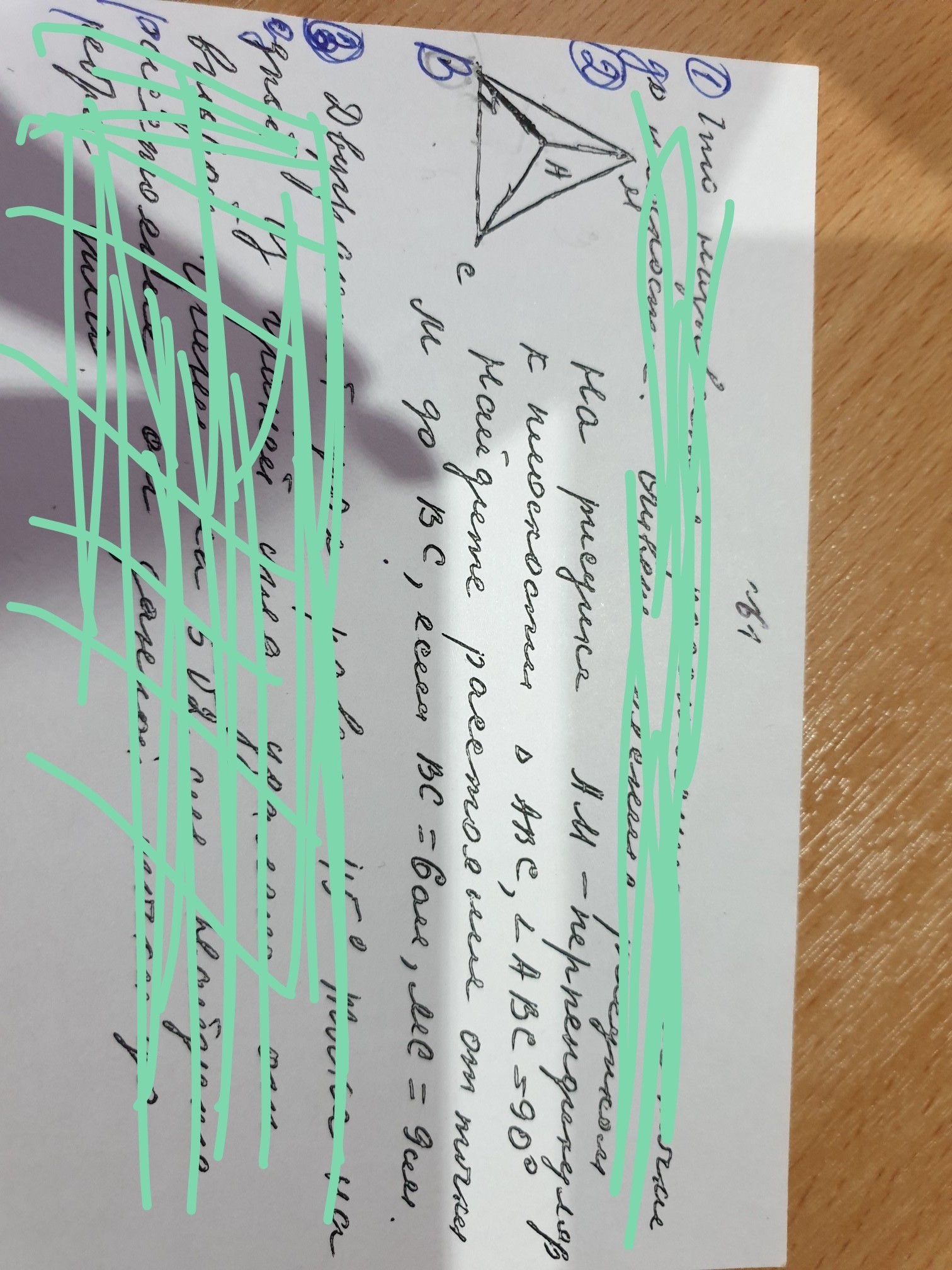 МА перпендикулярна АВС, значит она перпен-на ВС в пл-ти АВС(по признаку перп-ти) и ВС перпенд-на АВ(по усл.), значит ВС перп-на АМВ и значит ВС перпен-наВМ,, из пямоуг. тр-ка МВС найдем ВМ-это расстояние от т.М до ВС. МС^2=МВ^2+ВС^2, 81-36=МВ^2, МВ=V45=3V5