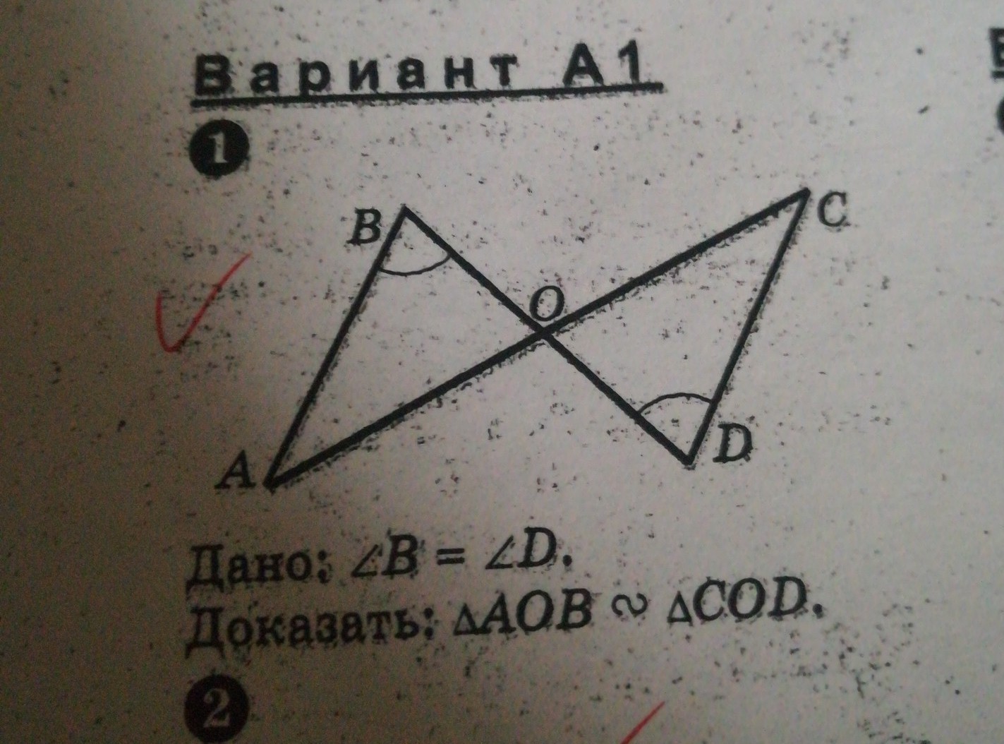 угол ВОА = углу СОD (вертикальные углы) следовательно треугольник и BOA и COD подобны (по 1 признаку подобия треугольников)