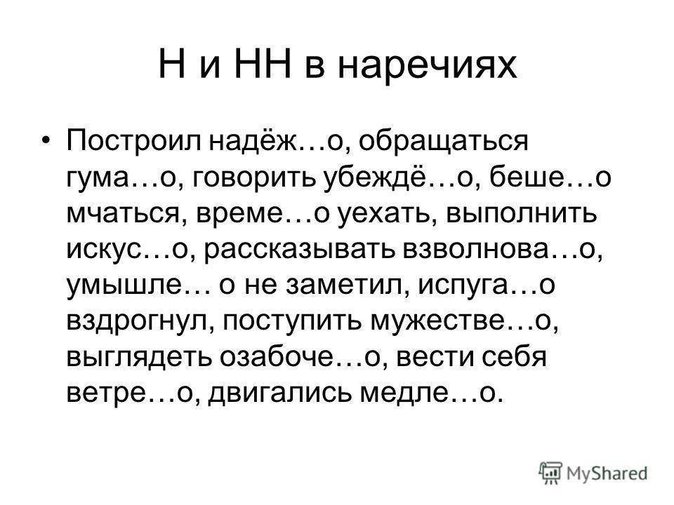 Построил надежно, обращаться гуманно, говорить убежденно, бешено мчаться, временно уехать, выполнить искусно, рассказывать взволнованно, умышленно не заметил, испуганно вздрогнул, поступить мужественно, выглядеть озабоченно, вести себя ветрено, двигались медленно