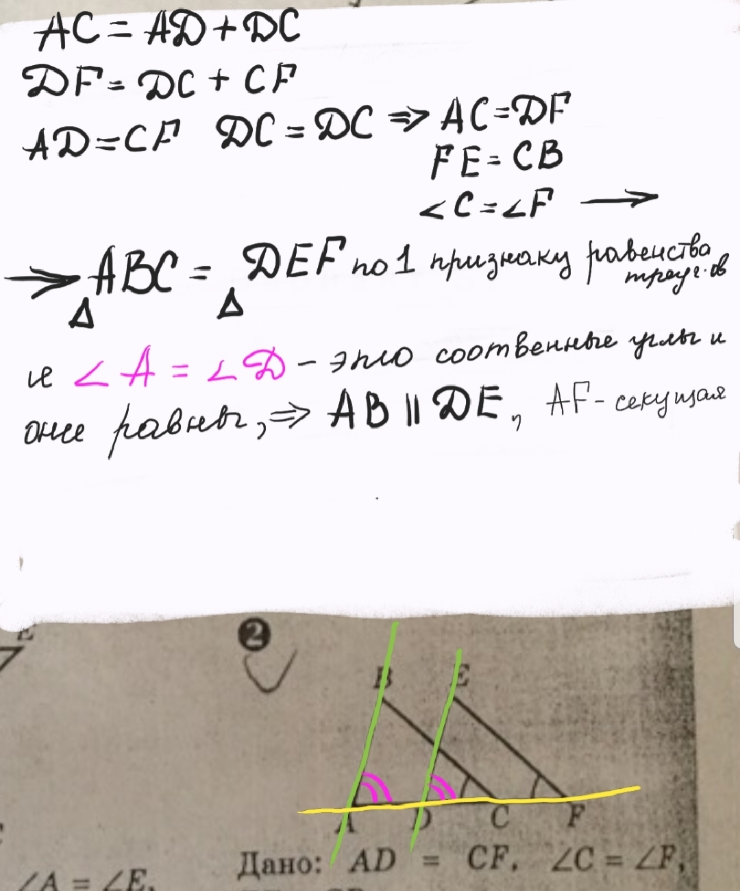 AD=CF, угл C= углу F