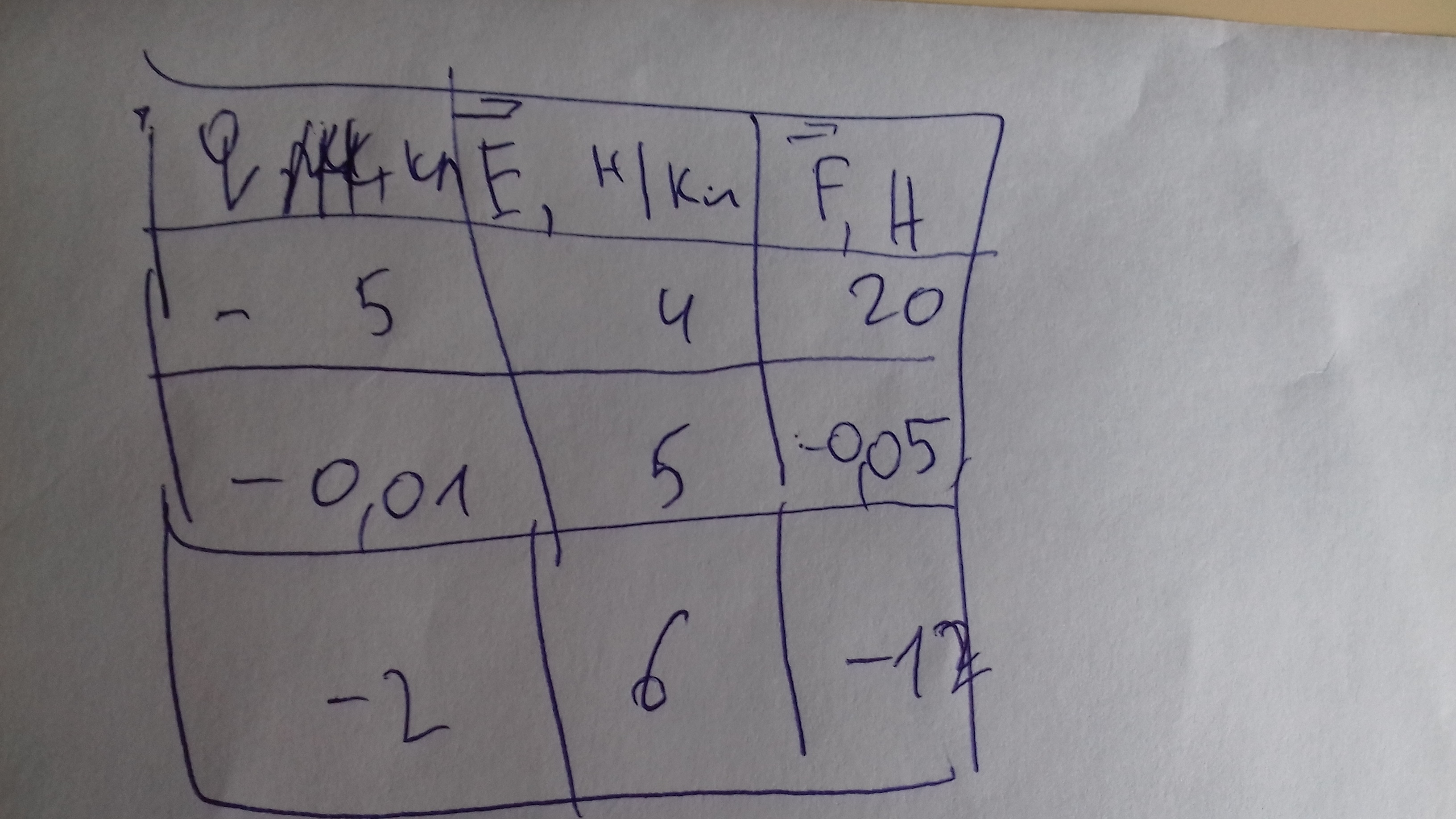 1. E=4 н/кл, F=20 Н найти заряд q-? 2. q=-0,01, Е=5, найти F-?