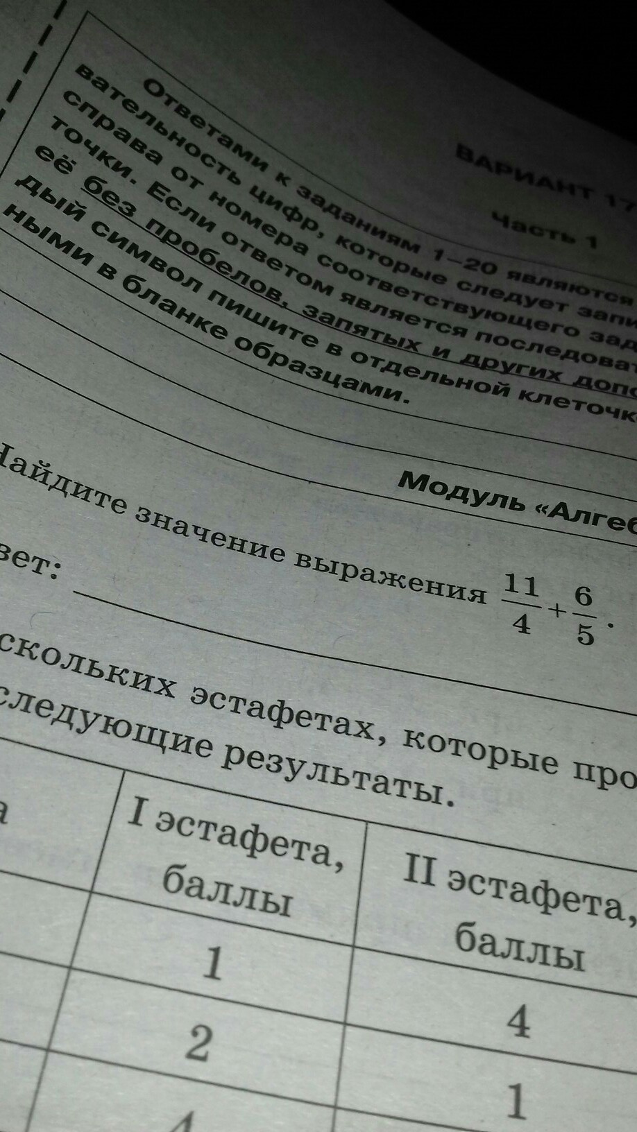 (11*5 + 6*4)/20 = (55+24)/20 = 79/20 = 3 19/20 - ответ.