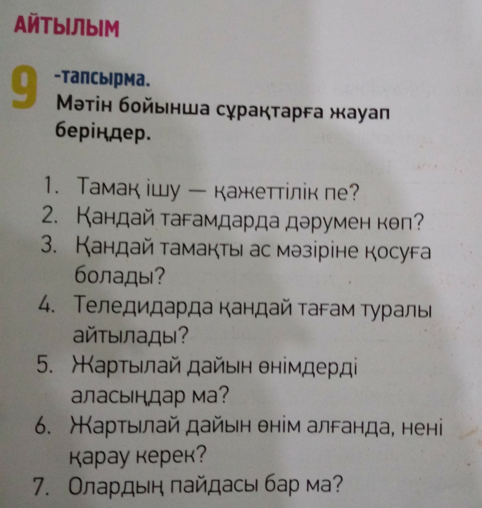 7. Менің ойымша дұрыс тамақтану керек, сондықтан мен тек қана адамға пайдалы, дәрумендері мол тамақты таңдаймын