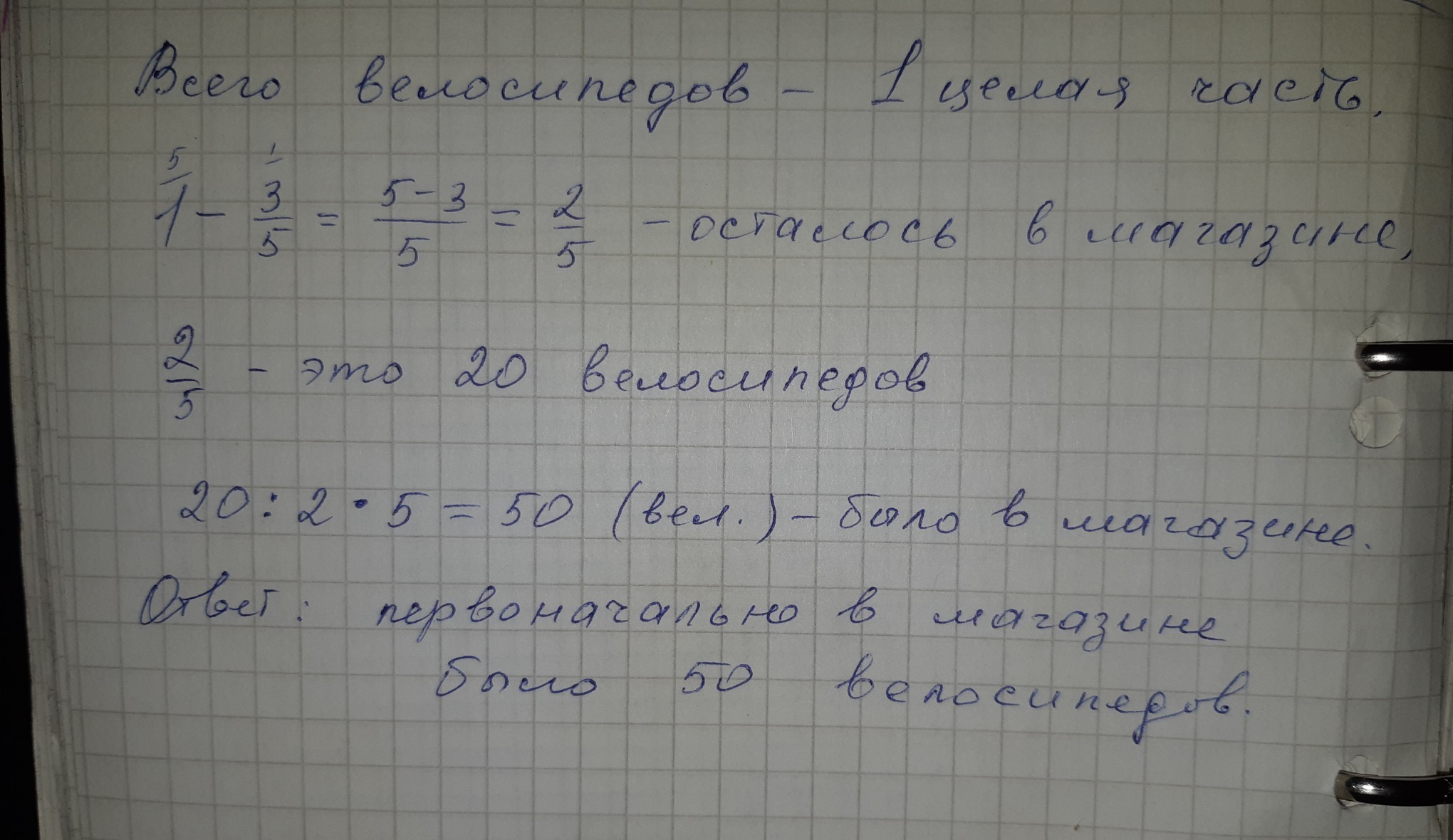 всех велосипедов, в магазине осталось 20 велосипедов. Сколько велосипедов было в магазине первоначально? Напишите решение и пояснения.