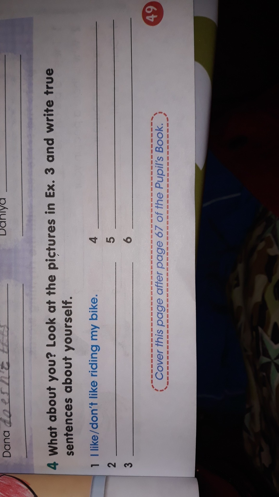 Что о тебе ? Посмотри на картинку из номера 3 и напиши правельные предложения о себе