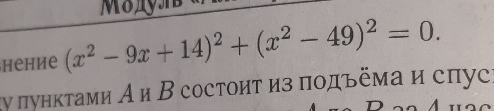 (x² - 9x + 14)² + (x² - 49)² = 0