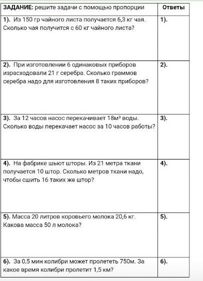 х = 60 · 6,3 : 150 = 2,52 (кг) - столько чая получится.