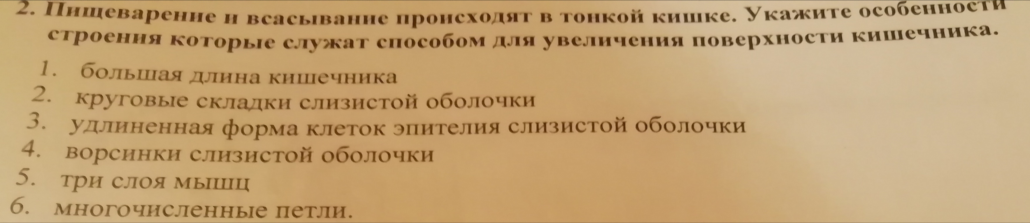 Пищеварение и всасывание происходят в тонкой кишке. Укажите особенности строения которые служат способом для увеличения поверхности кишечника.
