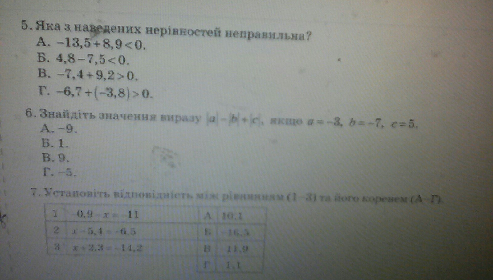 Пошаговое объяснение:5.г)-6,7+(-3,8)=-10, 5; - 10,5<0