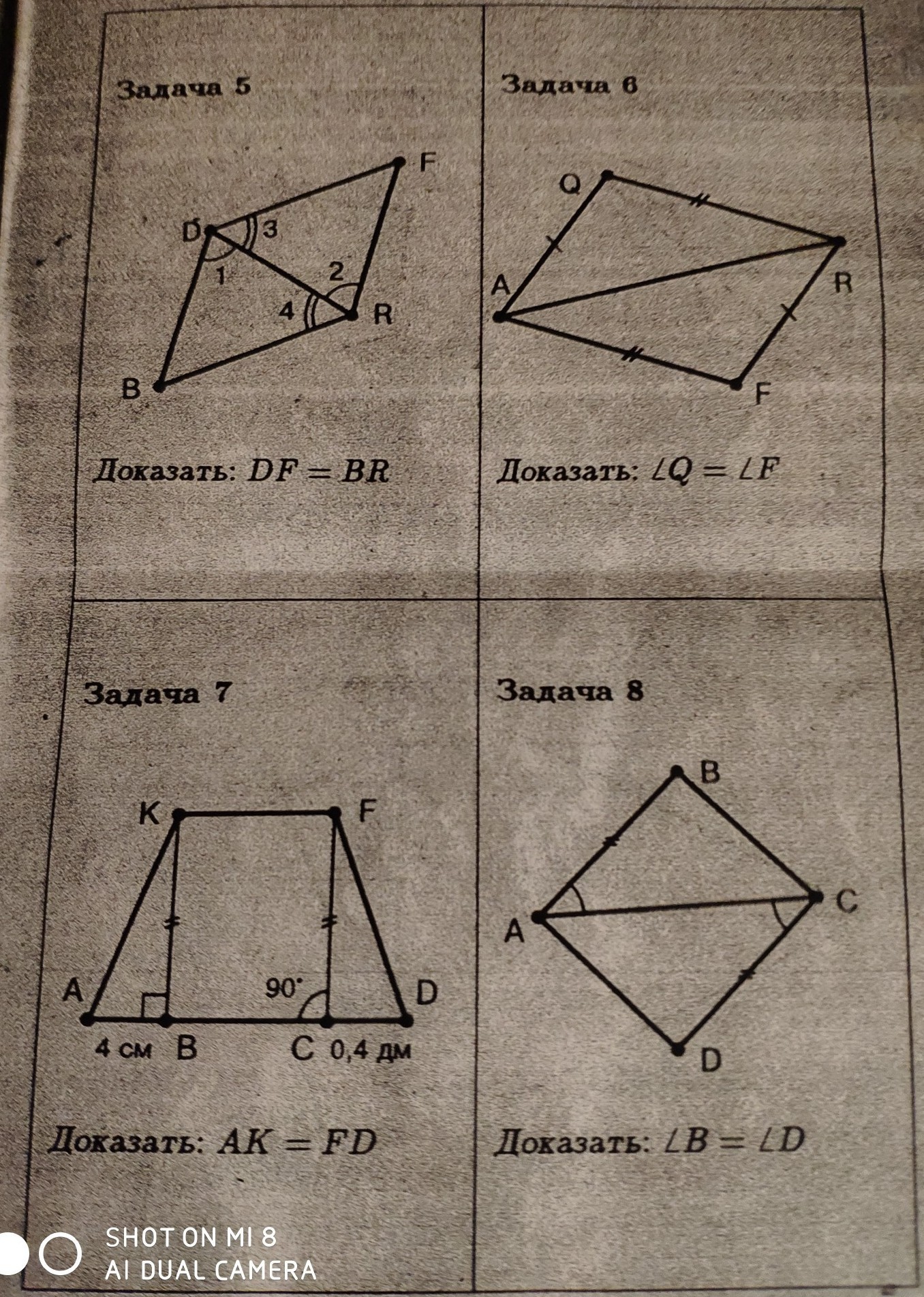 т. к. 0,4 дм = 4 см, то есть AB = CD, угол KBA = угол FCD, KB = FC, то треугольники AKB и FCD равны. (по 1-ому признаку)