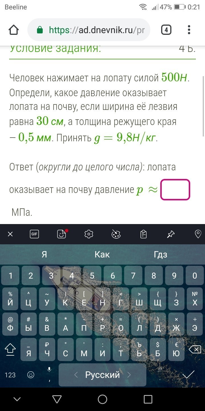 Ускорение свободного падения: g = 9,8 Н/кг.