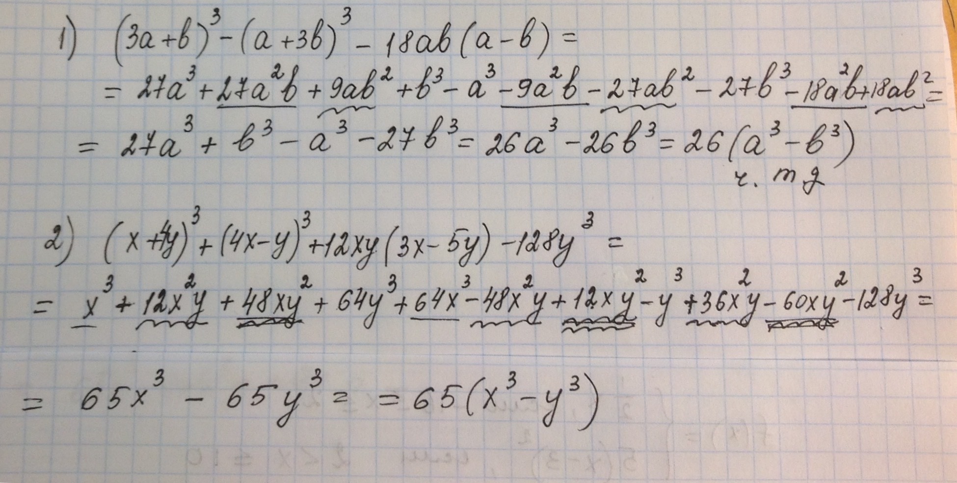 2) (x+4y)^3+(4x-y)^3+12xy(3x-5y)-128y^3=65(x^3-y^3)