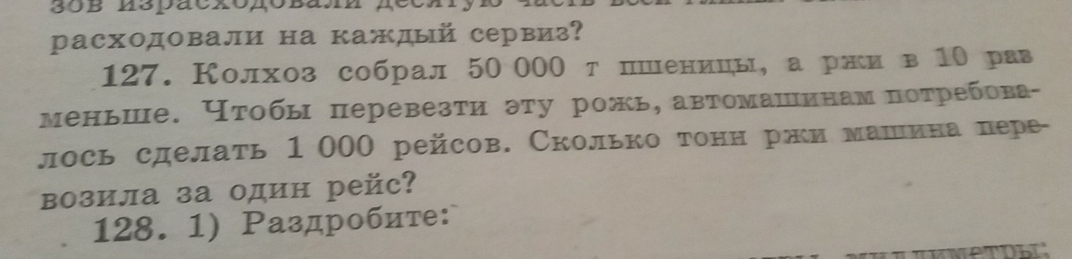 5000:1000 = 5 т перевозила машина за 1 рейс.