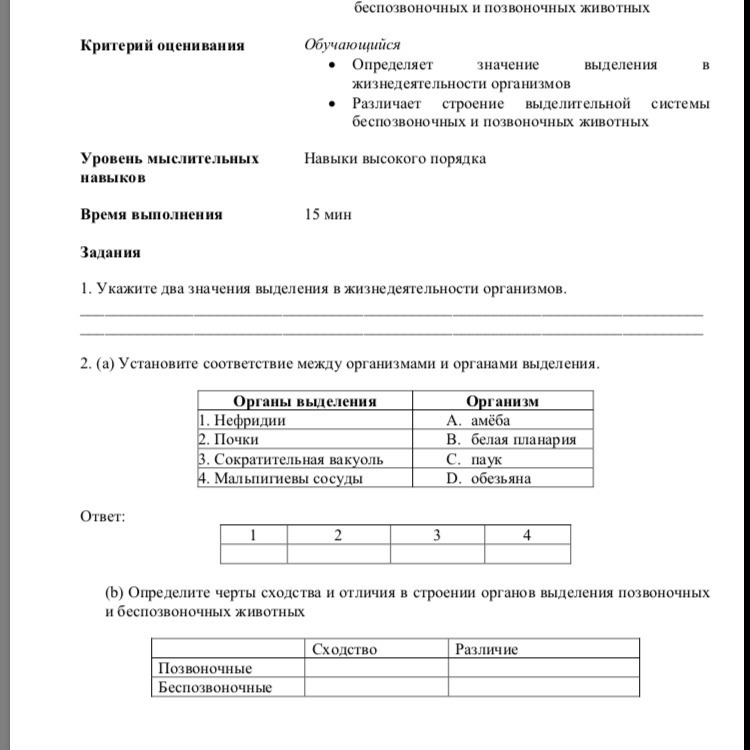 Сходство выделительных систем в их функции ( см пункт 1) , различия в строении - у позвоночных она более сложная, состоит из многих органов ( например : почки, мочевой пузырь, мочеточники ) , у беспозвоночных - примитивная