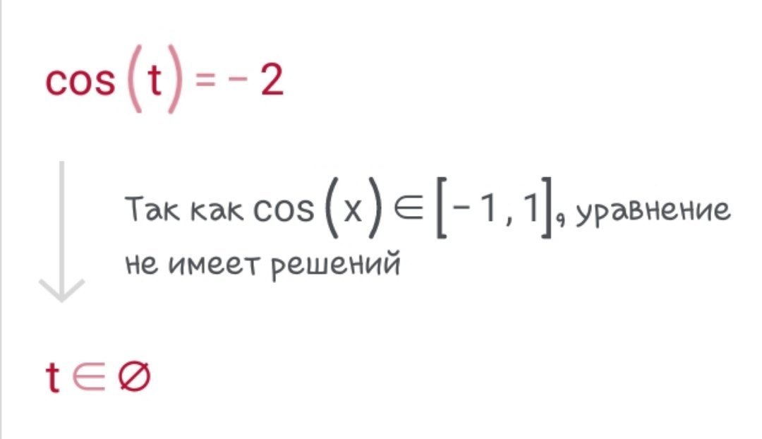 Данное уравнение не имеет корней, т.к. -1 ≤ cos t ≤ 1