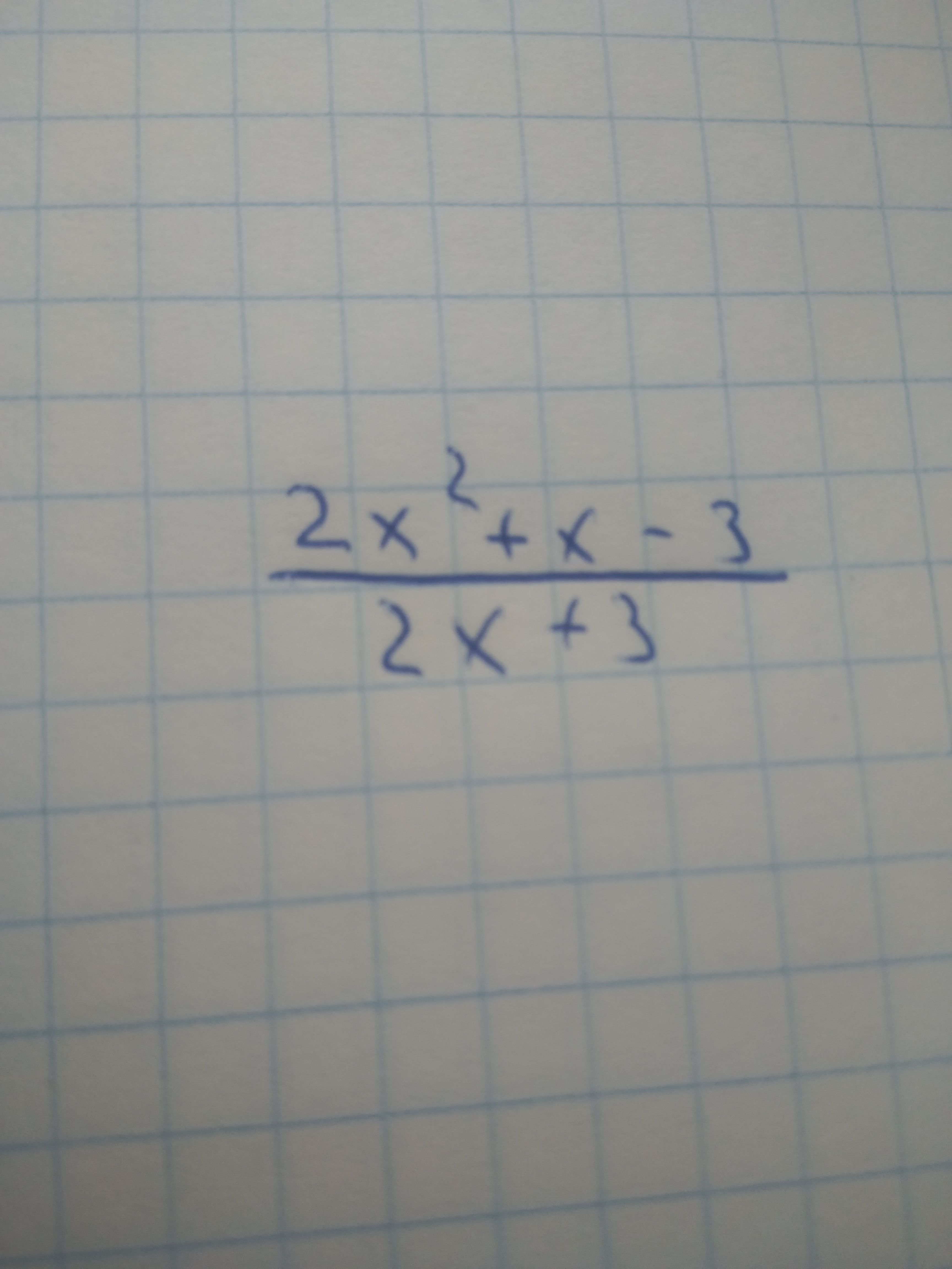 frac{2x {}^{2} + x  - 3 }{2x + 3}  \  frac{2 x {}^{2} + 3x - 2x - 3 }{2x + 3}  \  frac{x(2x + 3) - (2x  + 3)}{2x + 3}  \  frac{(2x + 3)(x - 1)}{2x + 3}  = x - 1
