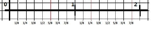 Если нам надо откладывать дроби по 1/8, то за единичный отрезок лучше взять 8 клеток и тогда каждая клетка будет по 1/8 от единичного отрезка.