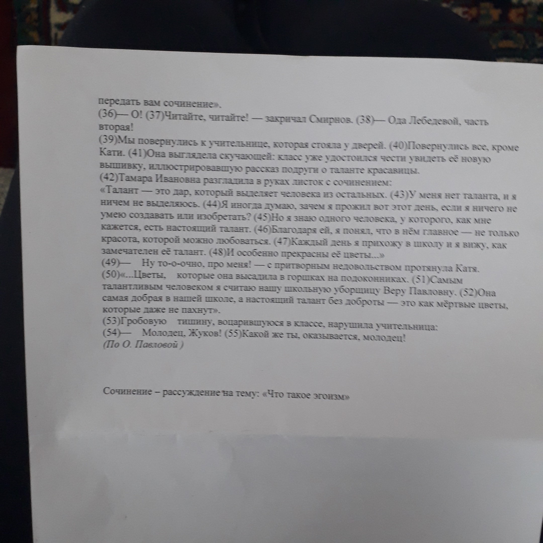 В рассказе О. Павловой мы можем найти несколько персонажей-эгоистов.