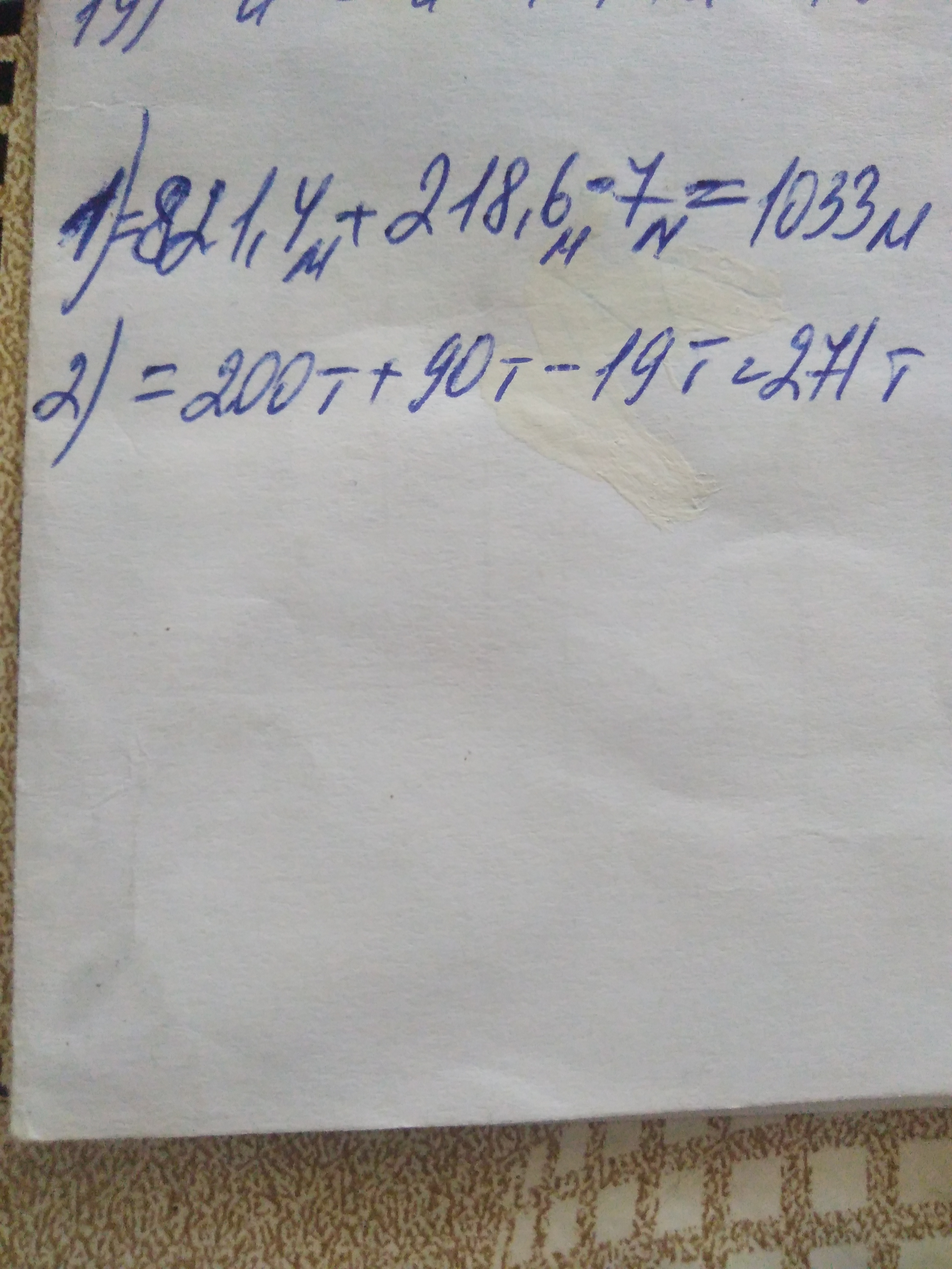 помогите по математике плиз выполните действия с велечинами. 821400мм+218600мм-7м. 200т +30т ×3 -19000кг