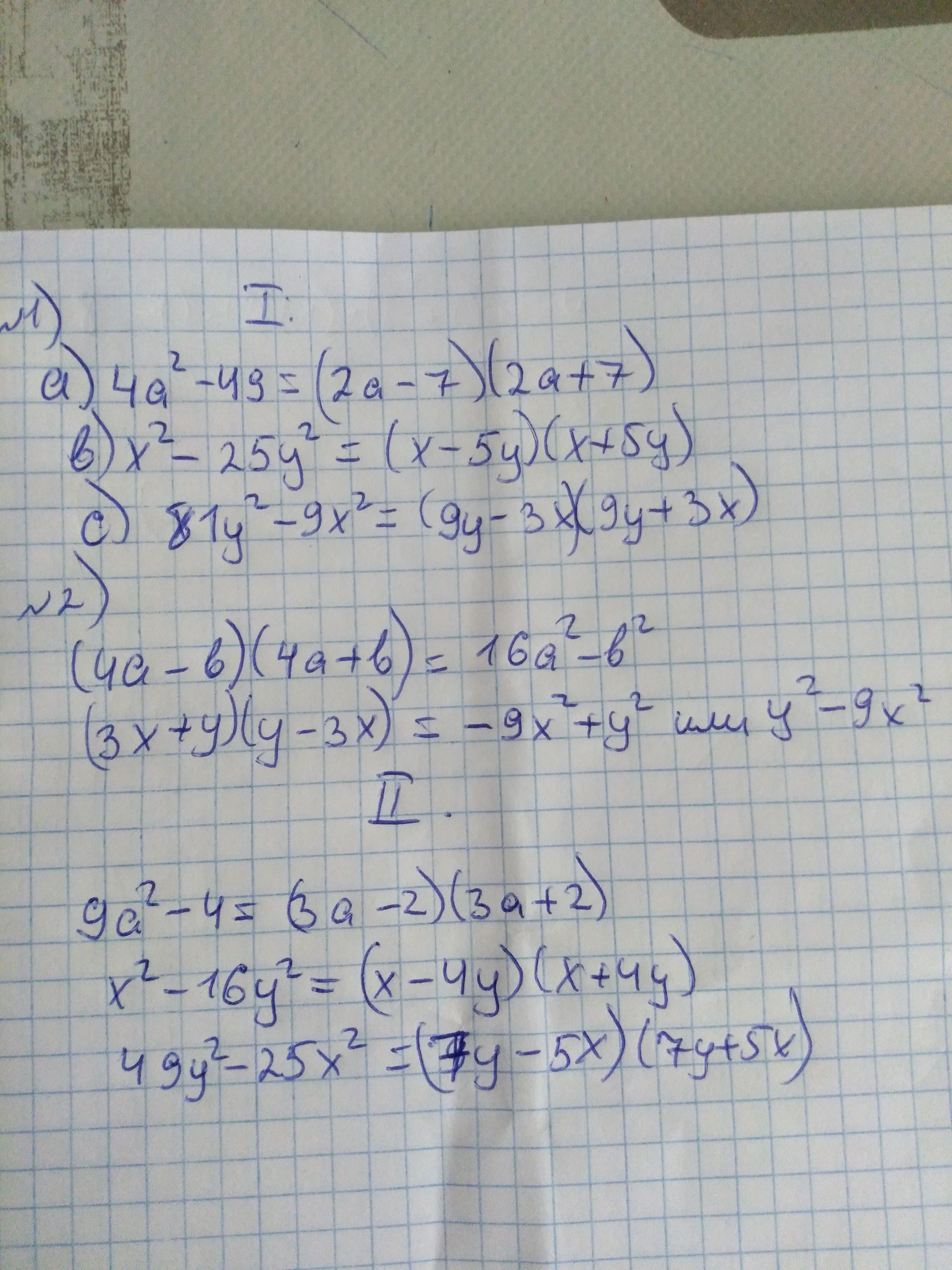 а) (2а-7)(2а+7)