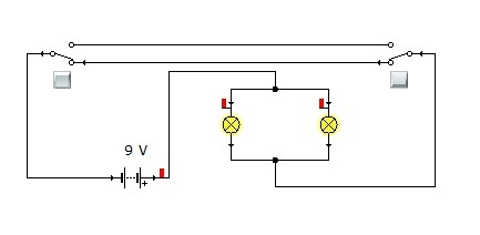 3. Начертите схему соединения лампочки и двух кнопок, расположенных так, чтобы можно было её включить из двух разных мест