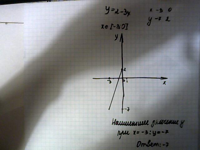 Найдите наименьшее значение линейной функции у = 2 - 3х на отрезке [-3;0]