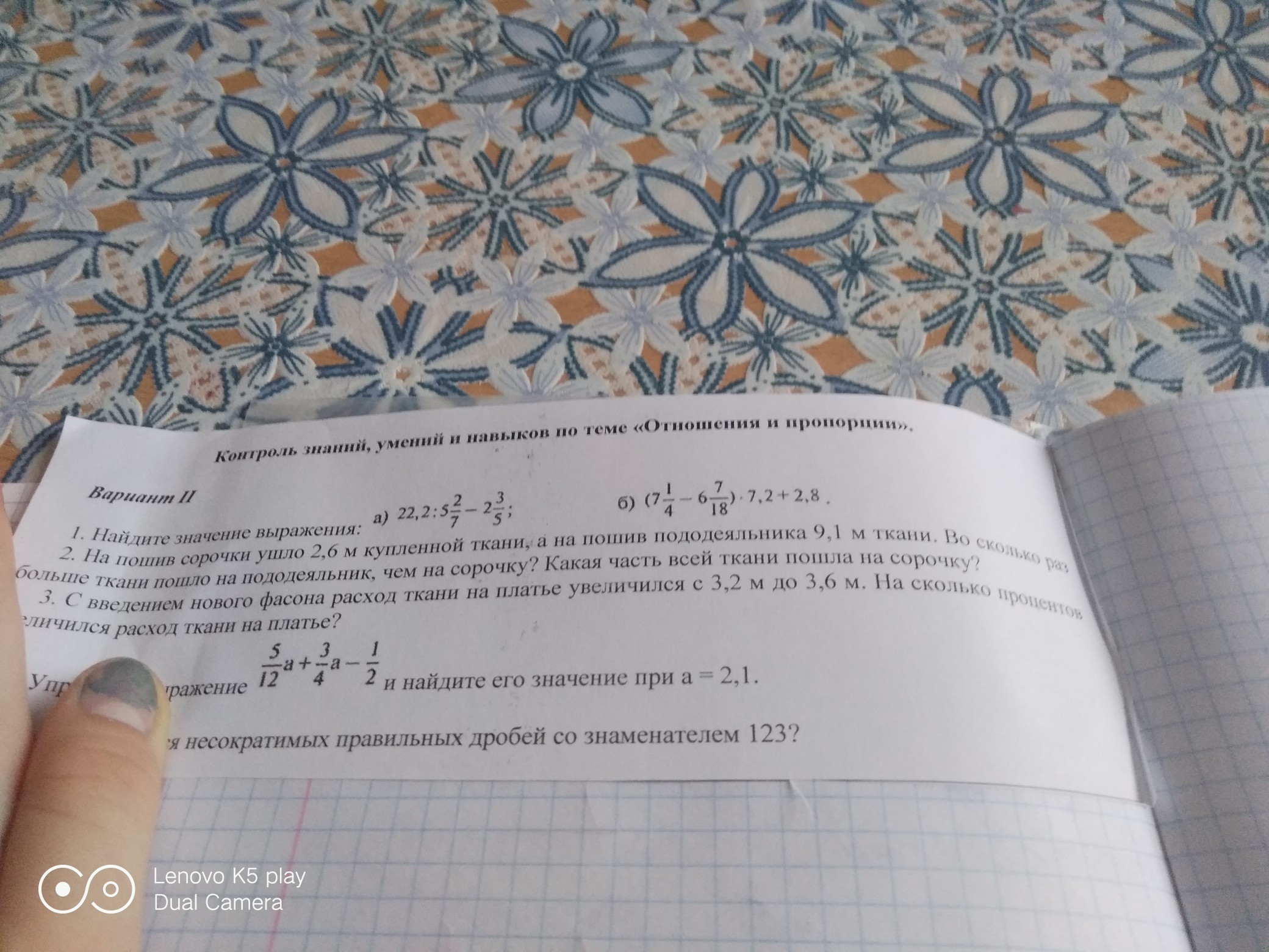 В а) мы просто разделим кол-во ткани на пододеяльник на кол-во ткани на сорочку, так как там написано "В сколько раз":