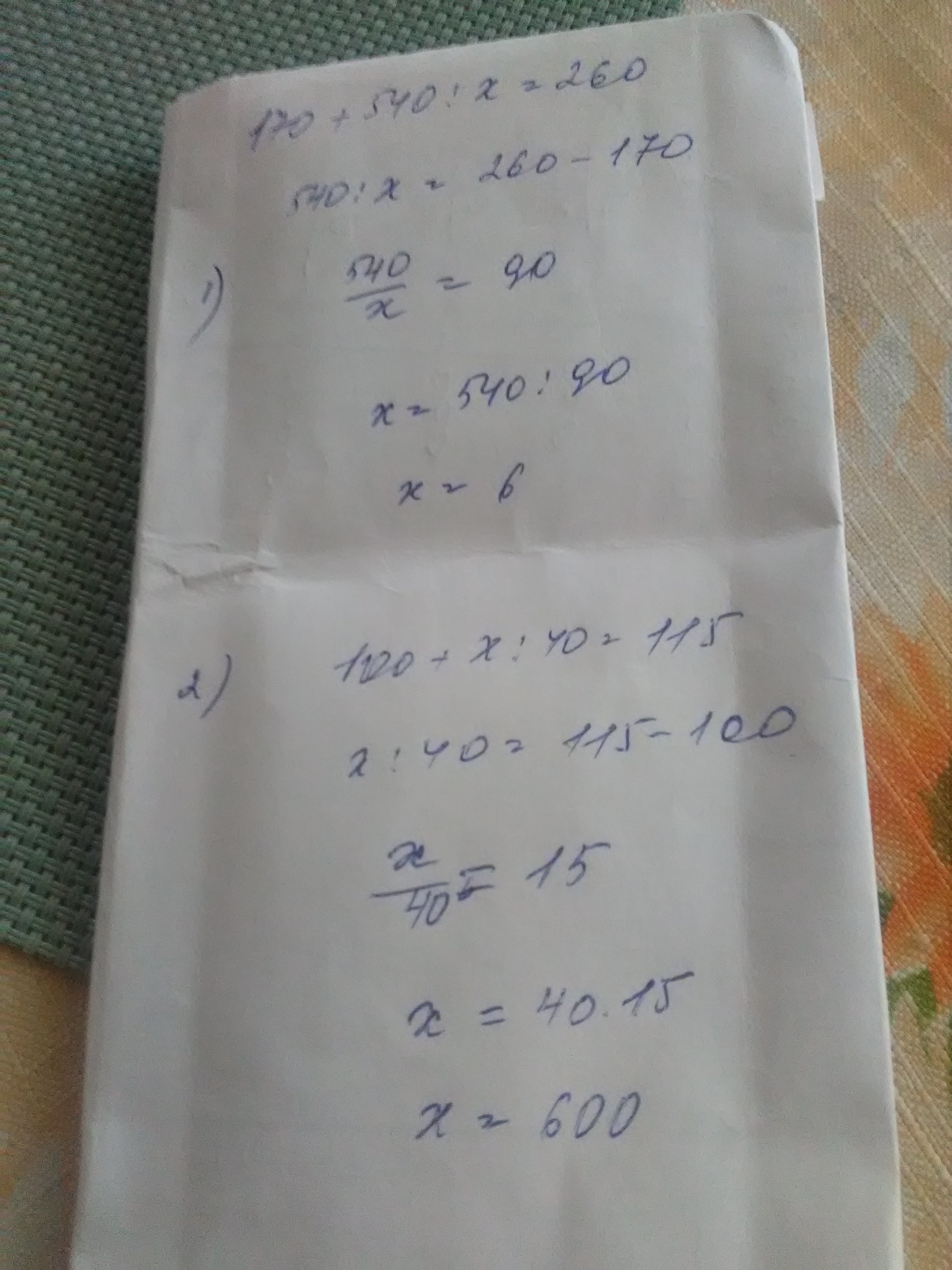 170+540:х=260. 540:х= 260-170. 540:х=90. Х=540:90.