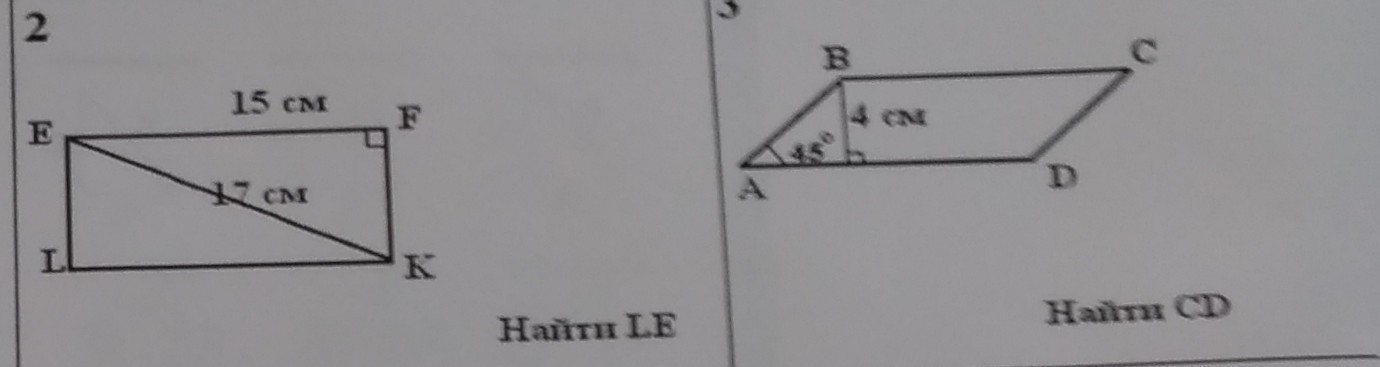 2. LE = FK = √(EK² - EF²) = √(17² - 15²) = √64 = 8(см)
