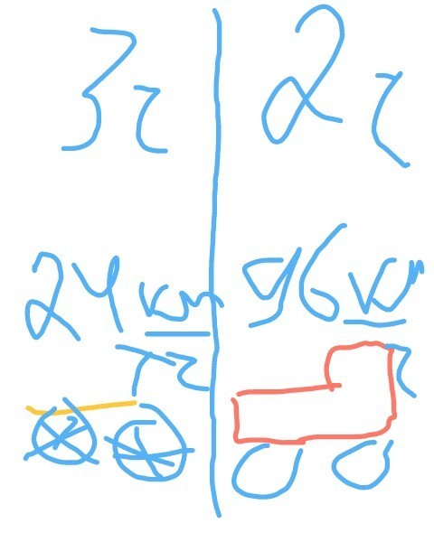 P.S. если по действиям нельзя, тогда последнее выражение звучит так : "если известно, что скорость грузовика равна 96 км/ч. Извиняюсь, что рисунок корявый, пальцем просто неудобно. Опять же, если оставить исходник(см. выше), тогда 24 км/ч * 4