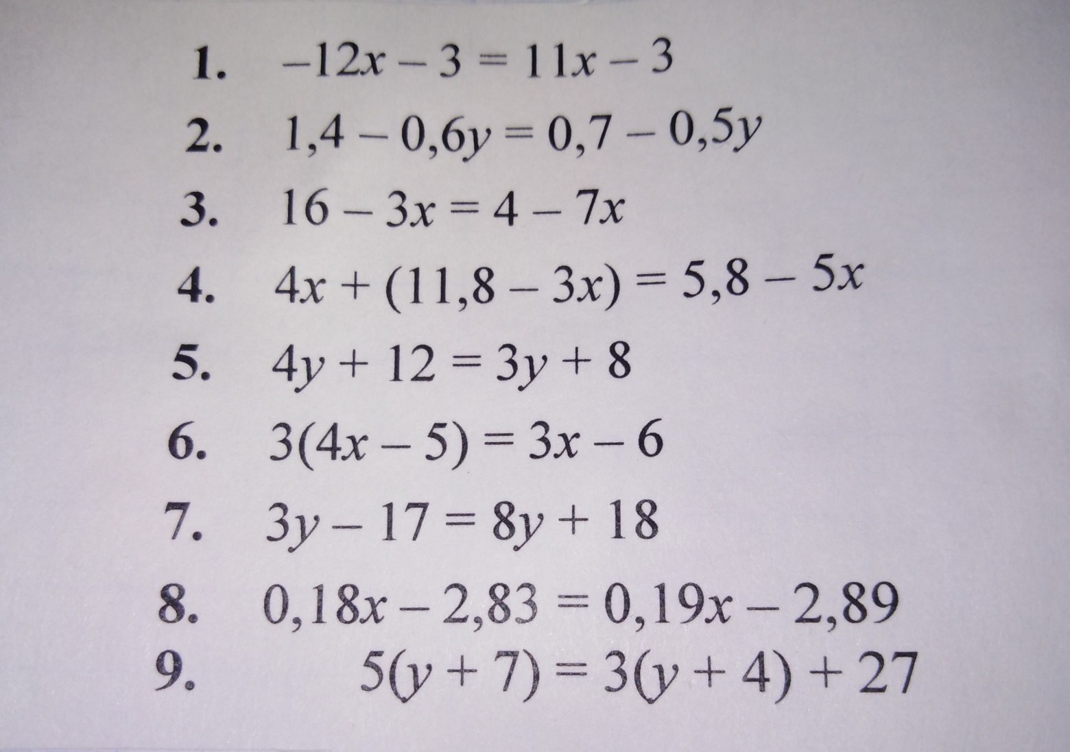 6) 3(4x-5)=3x-6