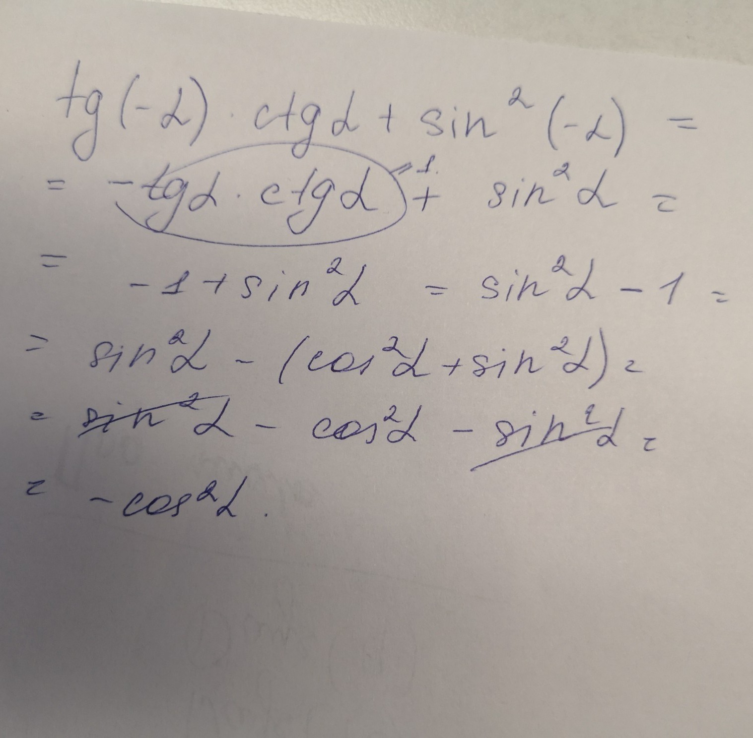 sin2α-tgα*ctgα=sin2α -sinα/cosα*cosα/sinα=sin2 α