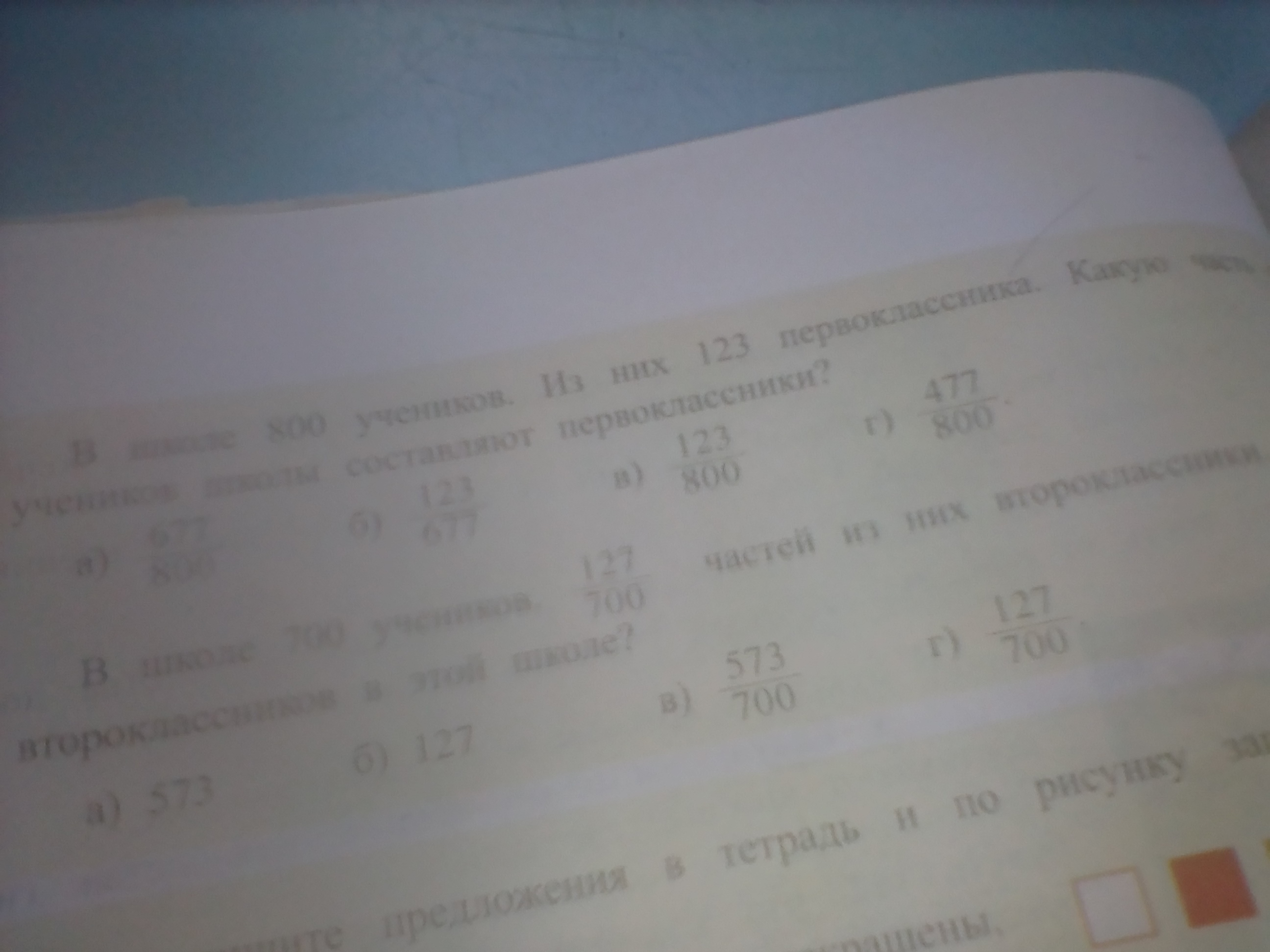 В школе 800 учеников. Из них 123 первоклассника. Какую часть от учеников школы составляют первоклассники